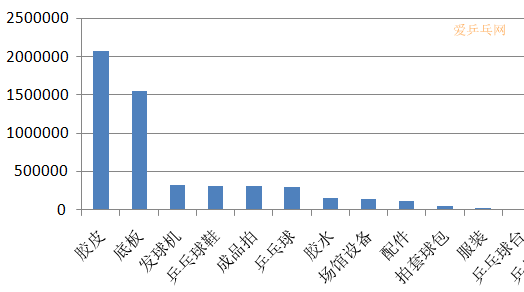 膠皮:依然是器材銷售的老大,占總銷售額的38.3%